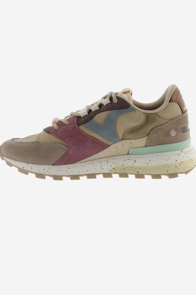 Luna sneakers for women, crafted from a combination of multicolored nylon, suede, and synthetic pieces. Details such as the stitched logo on the side and the faux fur on the tongue make them unique and special. They feature a speckled two-tone sole and a non-slip patterned outsole with embossed logo details for better grip. Additionally, they include a removable ergonomic and very comfortable insole.