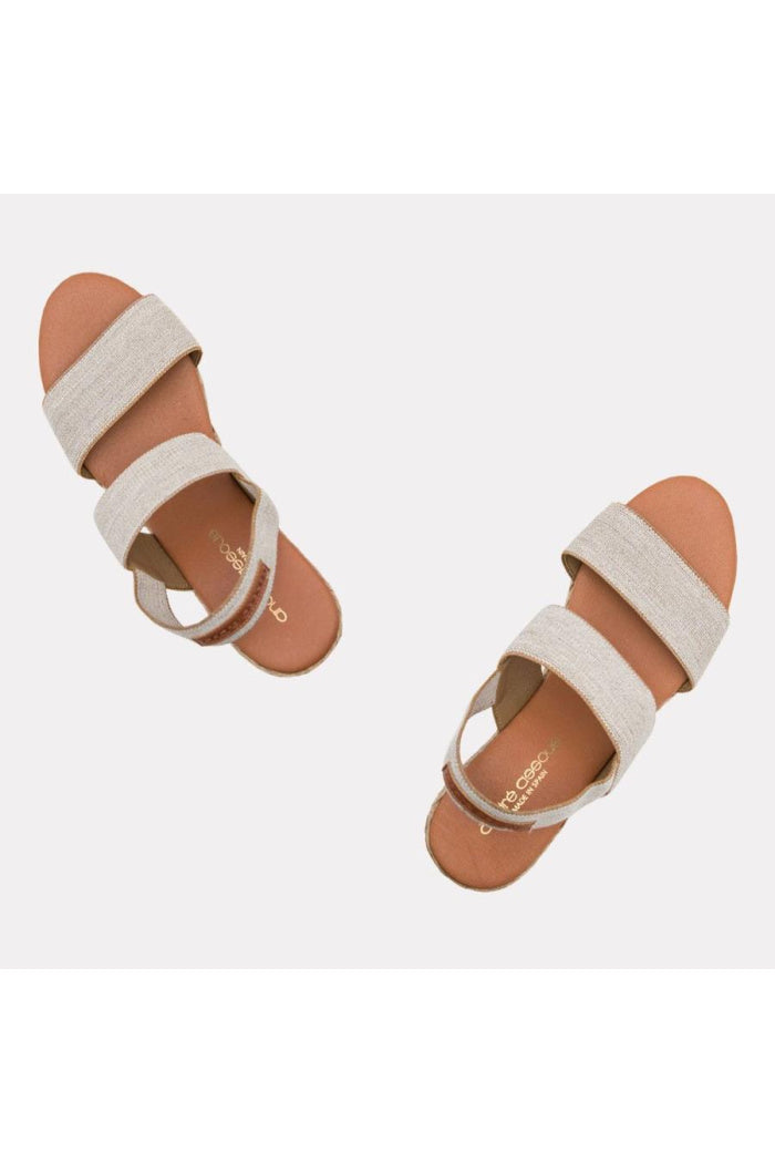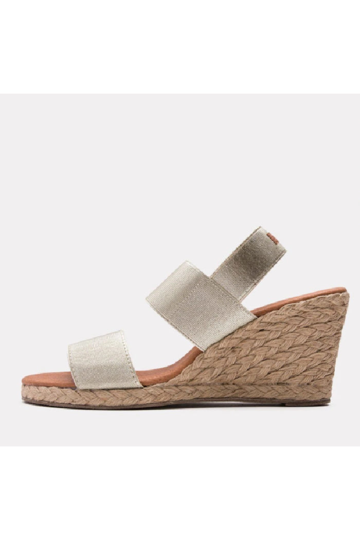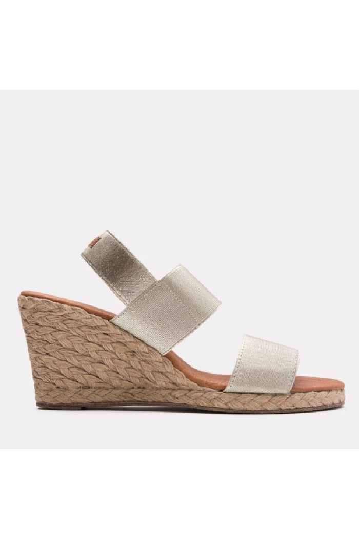 A multi-strap elastic upper keeps your feet comfortable in this espadrille mid-wedge. A classic beige upper will easily match anything in your closet.