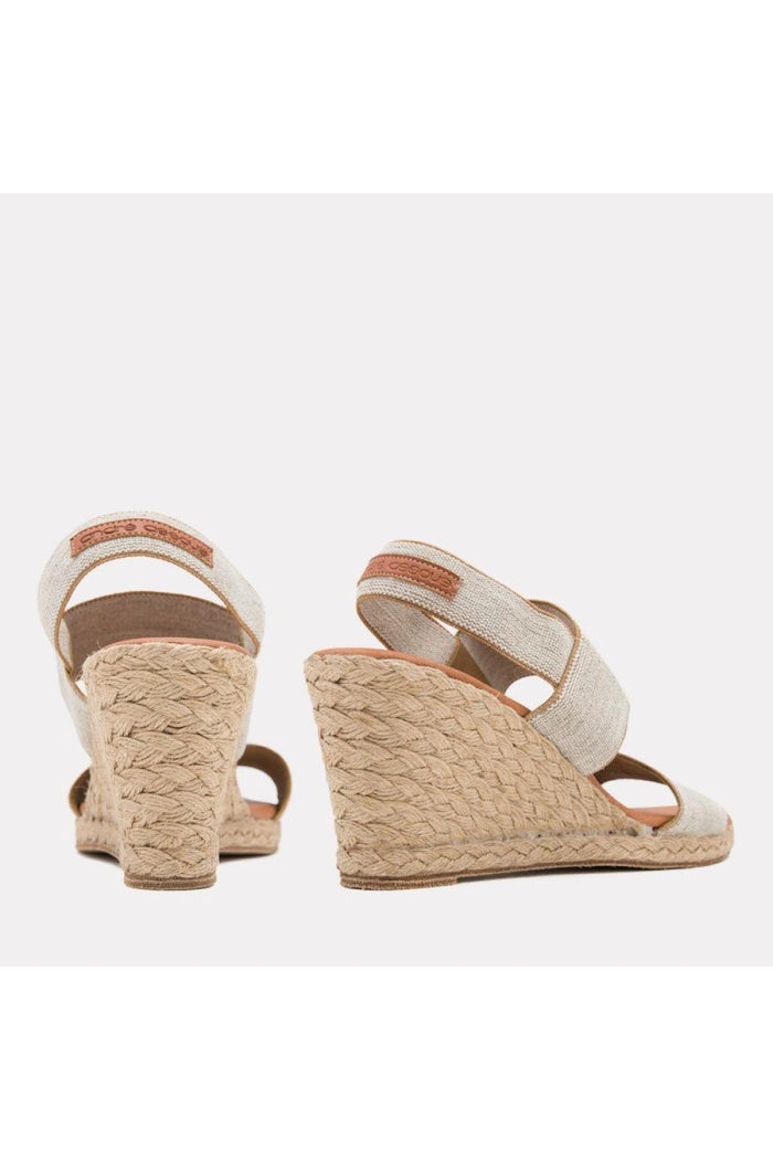 Heel approx 3"/Stretchy elastic straps/Woven jute espadrille/Padded leather insole/Made in Spain