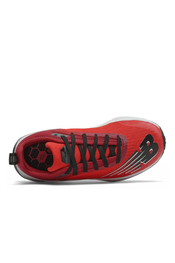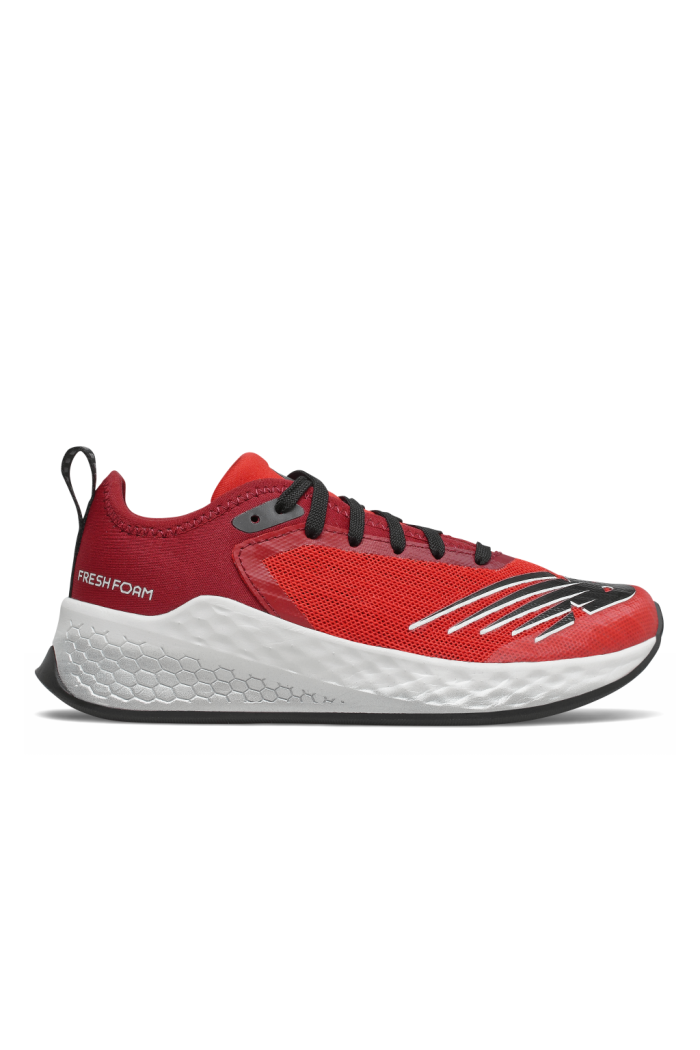 A lightweight, low-top running shoe built for young athletes, featuring a breathable red mesh upper and supportive lacing. The Boys Fresh Foam Fast v2 offers a sculpted Fresh Foam midsole for responsive cushioning and a textured rubber outsole for grip. New Balance designed this style for everyday training and play with a sporty silhouette and easy pull-tab at the heel.