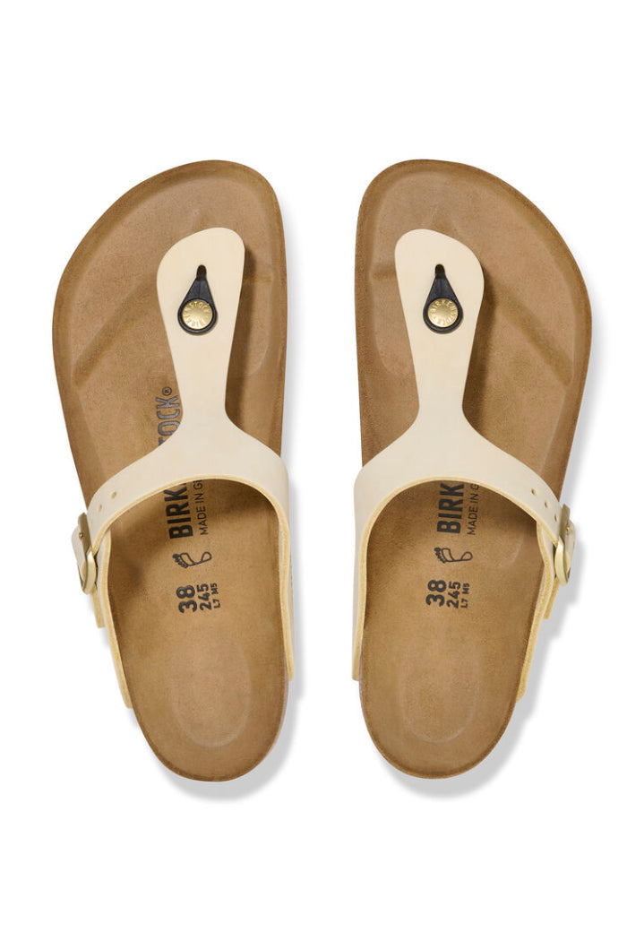 The Gizeh sandal refines the fit with legendary comfort and elegant detailing. Nubuck leather lends a velvety smooth finish to the everyday favorite. Complete with classic BIRKENSTOCK® design elements, like a contoured cork-latex footbed for the ultimate in support.