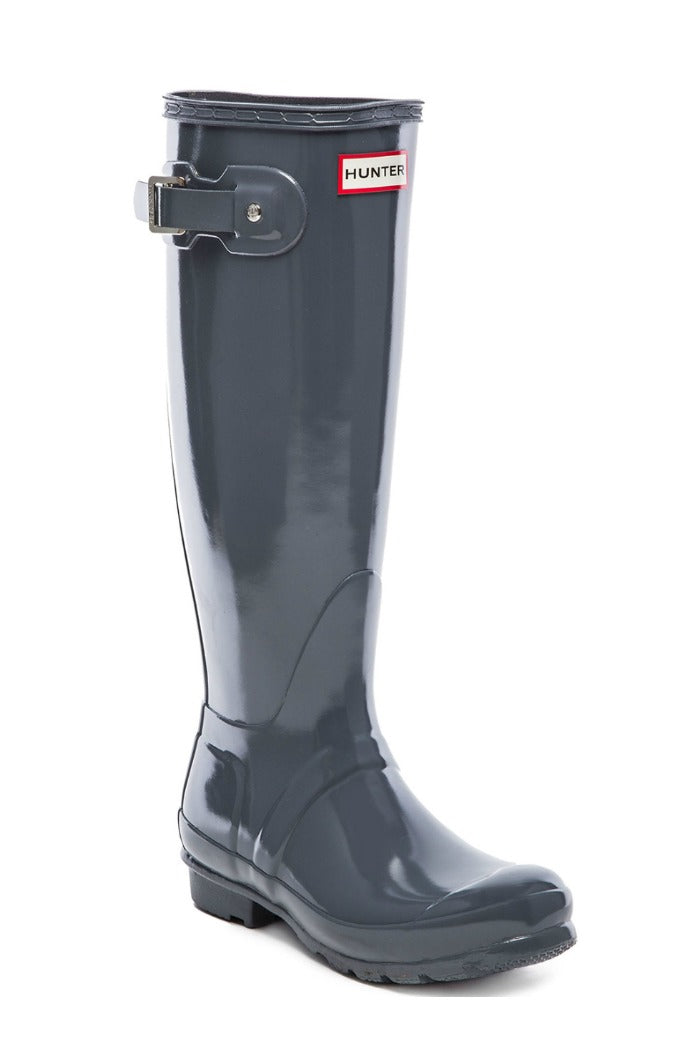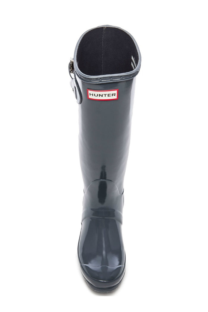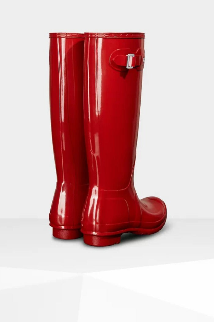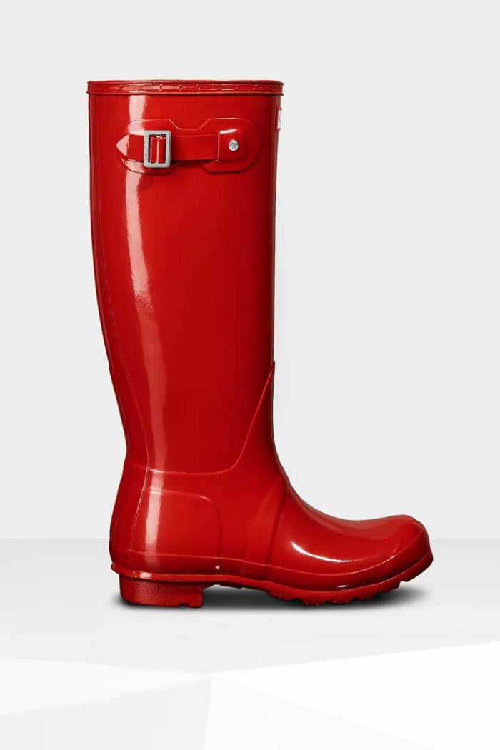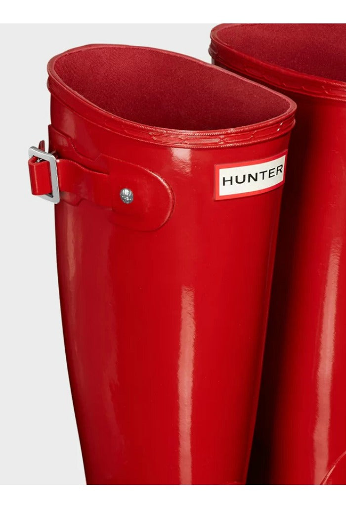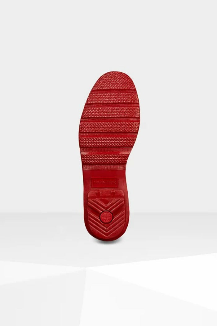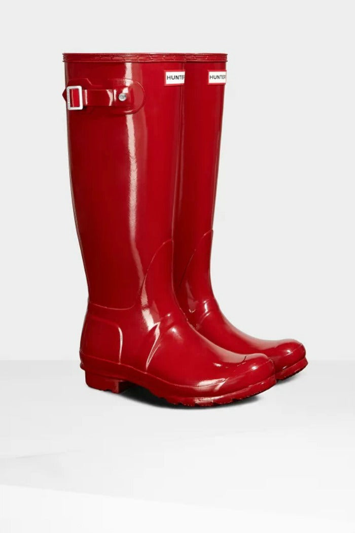 Perfect for wet weather conditions, this women's Rain Boot has been at the heart of the Hunter Original brand since its introduction in 1956. Formed of natural rubber, each pair is made from 28 hand-cut parts and assembled over three days on an aluminium last bespoke to Hunter, before being vulcanized for superior protection. Finished in a seasonal green shade and featuring the Hunter Original tread pattern, and a comfortable contrast polyester lining, this glossy waterproof boot is a rainy-day necessity.