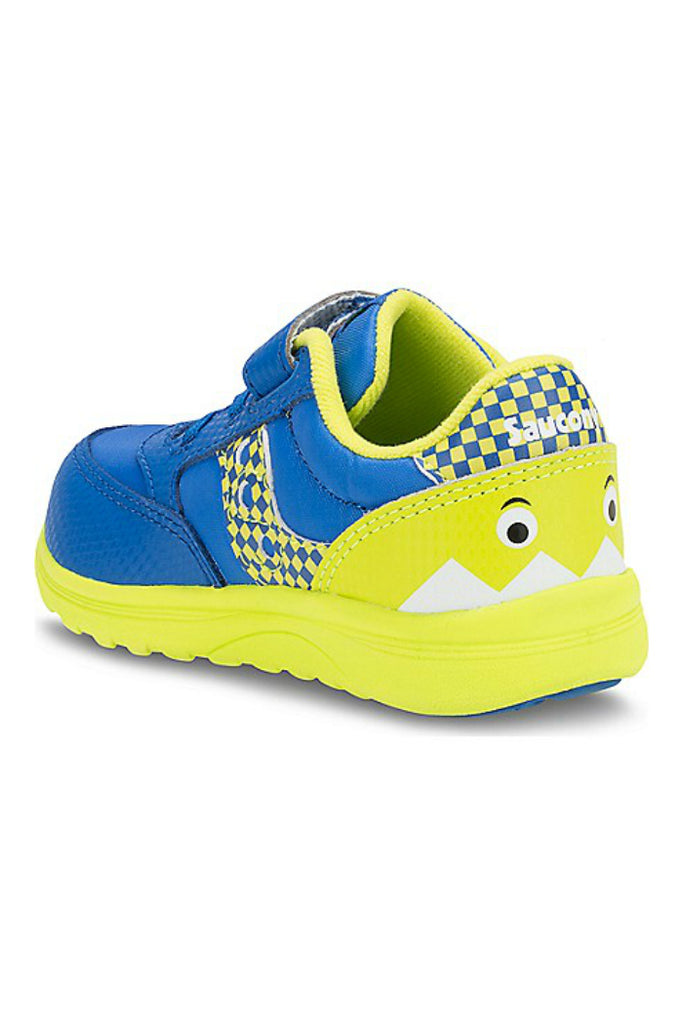 Jazz up your child's wardrobe with the Baby Jazz Hook-and-Loop shoe. The shoe has an updated combi-lasted construction, which gives it a flexible structure. This encourages natural foot movement. Hook-and-loop straps prevent the foot from slipping out of the shoe and keep the foot stable within. Non-marking rubber outsole.